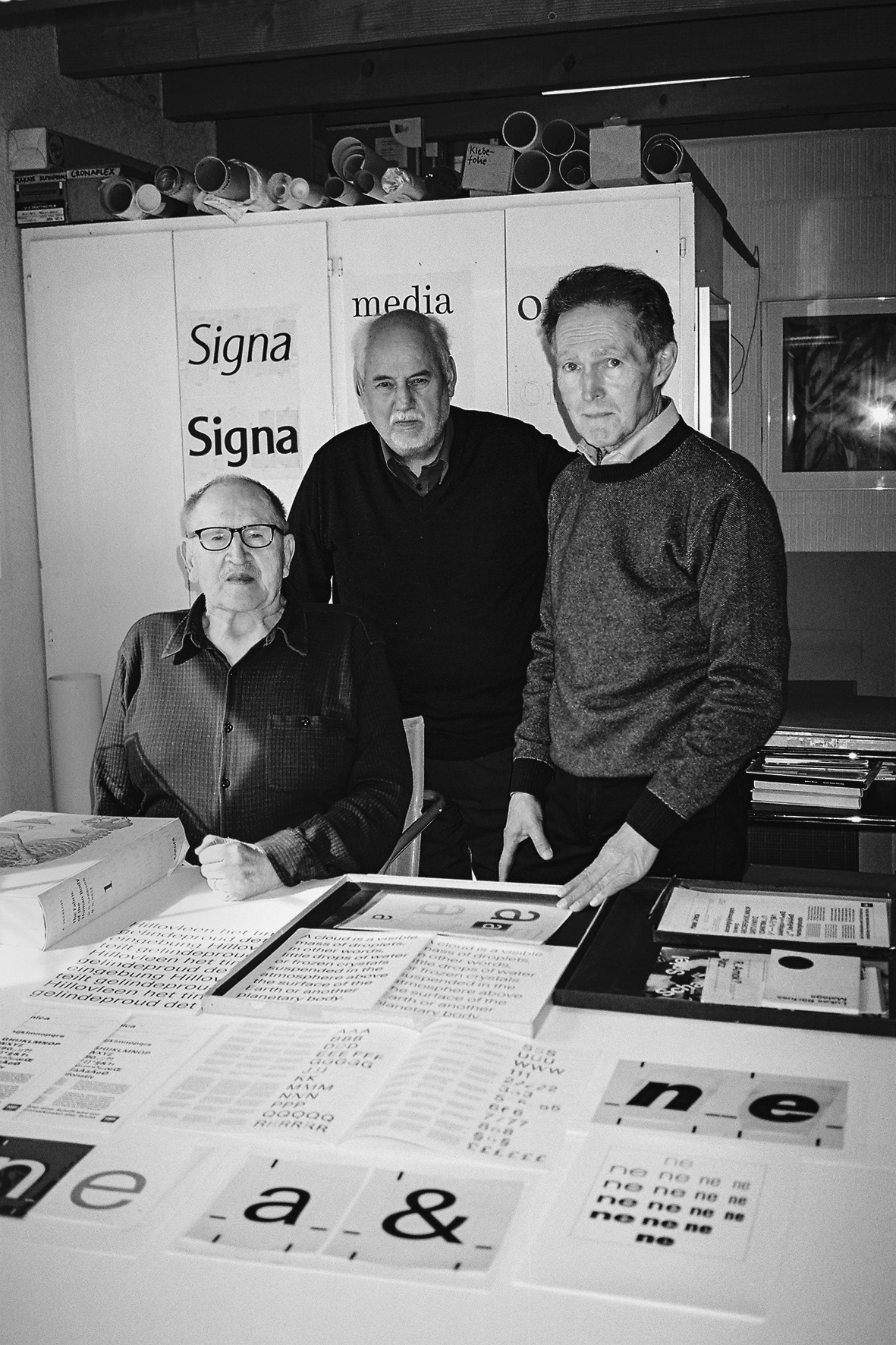 A l’issue d’une formation de base de design complétée par une formation de graphisme et de typographie auprès du département d’arts décoratifs de l’Allgemeine Gewerbeschule de Bâle (aujourd’hui Schule für Gestaltung), les protagonistes de Team’77 – André Gürtler (*1936), Christian Mengelt (*1938) et Erich Gschwind (*1947) – travaillent comme designers visuels, enseignants spécialisés et professeurs invités dans les domaines du graphisme, de la typogra phie et surtout de la création de caractères. Par ailleurs, ils signent une multitude de publications dans leur spécialité. A partir de 1974, outre un vaste éventail de pro duction de design graphique, le collectif indépendant de designers réalise d’importantes écritures scriptes : Cyrillic Gothic (1974) et Alpin Gothic (1974) pour la Compugraphic Corporation (USA), Media (1976) et Signa (1978) pour Bobst Graphic (Lausanne) et Autologic (USA), Avant Garde Gothic Oblique (1977) pour ITC (USA). Sur commande de la fonderie Haas à Münchenstein, active dans la typographie depuis quatre cents ans, ils mettent au point la légendaire Haas Unica (1980) pour répondre aux possibilités technologiques élargies ouvertes par le processus, nouveau à l’époque, de la photocomposition. En représentants de l’« International (Swiss) Style », l’approche moderne de leur réinterprétation de la tradition humaniste des caractères d’imprimerie, mais aussi leur appropriation esthétique porteuse de nou- velles technologies et l’usage qu’ils en font, allant jusqu’à la production numérique, ont durablement marqué la typographie. En 2015, l’Office fédéral de la culture décerne au collectif Team’77 le Grand Prix suisse de design.