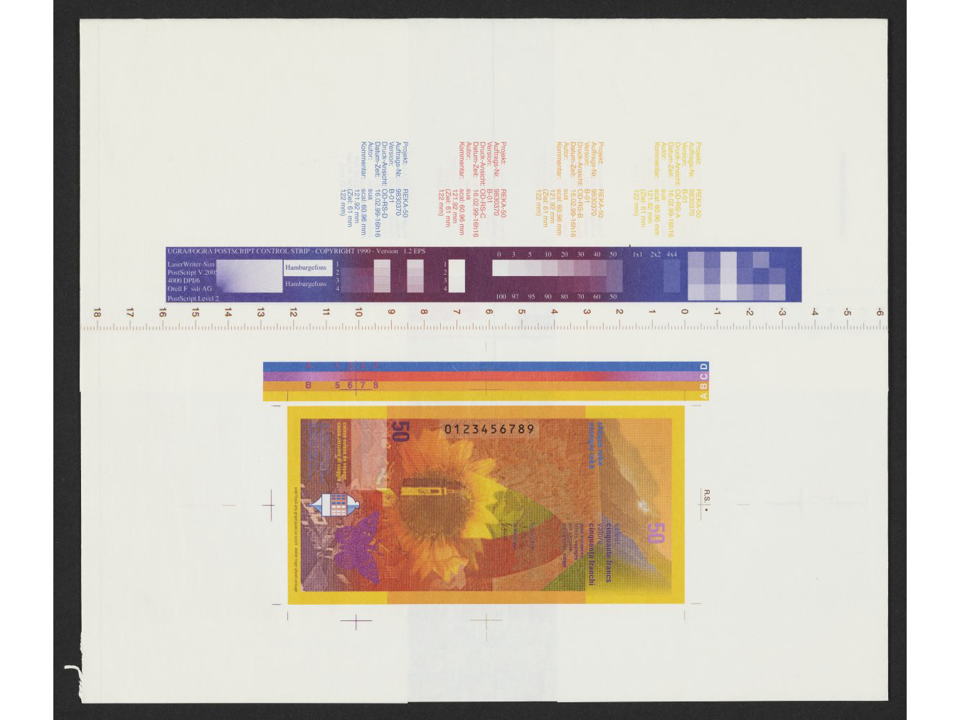 Originaldruckbogen REKA Checks zu 50 Franken.