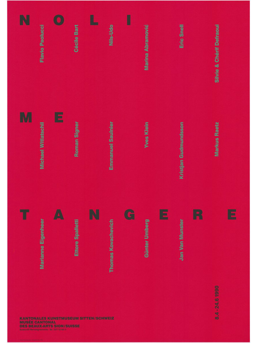 Plakat. Noli me tangere.Musée cantonal des Beaux-Arts, Sion. 1990